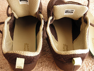 Comfort is another big plus. These are about as cushy as a pair of sneakers comes, and the flexibility of the sole really enhances the cushiness so that the shoes almost feel like a pair of bedroom slippers. What's kind of cool about this (aside from the fact that it feels like I'm walking around town in bunny slippers) is that my feet don't even notice that none of that cushioning is under the feet.